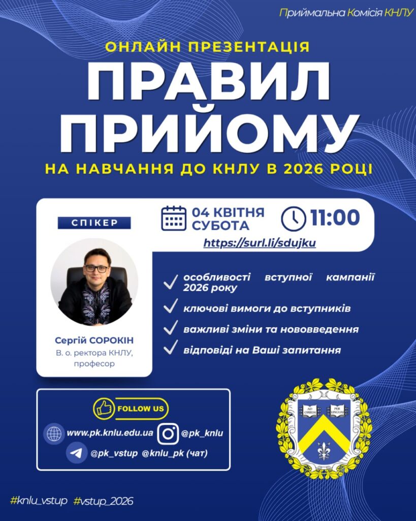 Запрошуємо на презентацію Правил прийому на навчання до КНЛУ в 2026 році.
