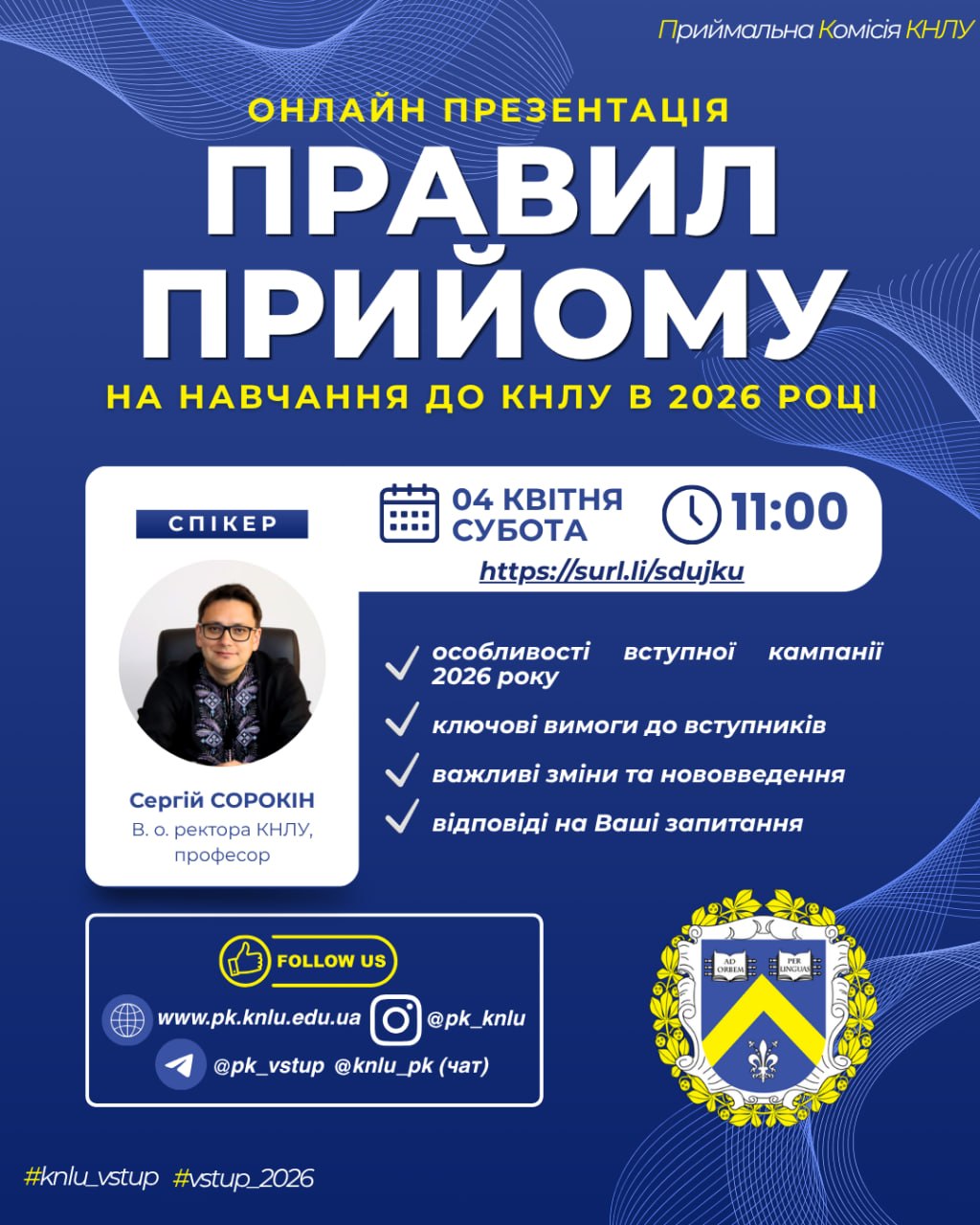 🎙 Спікер – в. о. ректора КНЛУ Сергій Сорокін, який детально розповість про: