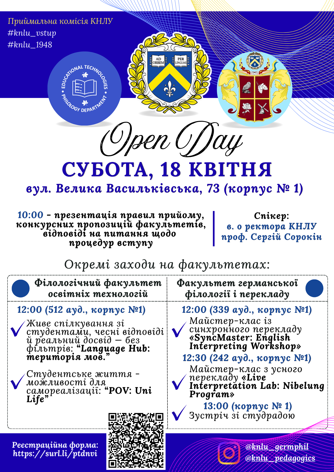 Запрошуємо майбутніх вступників, батьків і всіх охочих на День відкритих дверей факультетів: